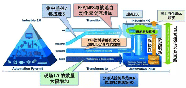 更值得關(guān)注的是PLC的體系架構(gòu)正面臨著顛覆性的創(chuàng)新,下一代的PLC極大可能會(huì)是分布式控制節(jié)點(diǎn)(DCN)取代現(xiàn)場(chǎng)要求實(shí)時(shí)控制的PLC,處在本地云端的虛擬PLC承擔(dān)非實(shí)時(shí)要求或?qū)崟r(shí)性要求不高的PLC功能,依靠強(qiáng)有力的OPC UA over TSN,構(gòu)成開(kāi)放的分布式的新型PLC系統(tǒng)(詳見(jiàn)附圖)。