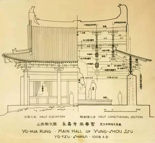 建于1008年山西榆次永壽寺雨華宮,在民國(guó)初期據(jù)說(shuō)因?yàn)樾掼F路被拆。