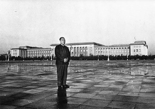 在這張照片里,他站在一堆臨記(臨時(shí)演員)旁邊,中間又有舞臺(tái)的感覺,像是擺拍。其實(shí)他是在指揮拍攝,準(zhǔn)備叫:Camera(開機(jī))!