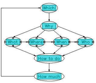 6W2H通用決策:是一個以價值為導向的標準化思維流程,是人們在追求理想和目標的過程中,都要經(jīng)過選擇目標(which)→選擇原因(why)→功能如何→(what)→什么場地(where)→什么時間(when)→什么組織(who)→如何提高效率(how to do)→性價比如何(how much)八個方面提出問題并從中選擇性價比最高的方法和路徑來實現(xiàn)預定目標。