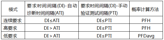 IEC61508對執(zhí)行SIF功能的設(shè)備定義了3種操作模式(表4):連續(xù)要求操作模式(Continuous Demand)、高要求操作模式(High Demand)和低要求操作模式(Low Demand),針對3種不同操作模式的設(shè)備,其與測試技術(shù)的關(guān)系是不同的。