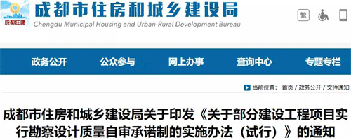 2020年7月1日成都市住建局《關(guān)于部分建設(shè)工程項目實行勘察設(shè)計質(zhì)量自審承諾制的實施辦法(試行)》正式印發(fā),通知自2020年8月1日起施行。