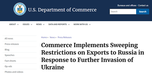 美國(guó)商務(wù)部稱,該措施主要針對(duì)俄羅斯的國(guó)防、航空航天和航運(yùn)業(yè),希望“切斷俄羅斯獲得重要技術(shù)的途徑,萎縮其工業(yè)基礎(chǔ)關(guān)鍵部門,并削弱其在世界舞臺(tái)上施加影響的戰(zhàn)略雄心?!备匾氖牵摯胧⒉粌H限制美國(guó)企業(yè)出口技術(shù)給俄羅斯,在美國(guó)以外生產(chǎn)的使用了特定美國(guó)設(shè)備、軟件或設(shè)計(jì)圖的外國(guó)商品也被納入其中,是美國(guó)針對(duì)一個(gè)國(guó)家出臺(tái)的最為全面的出口管制。