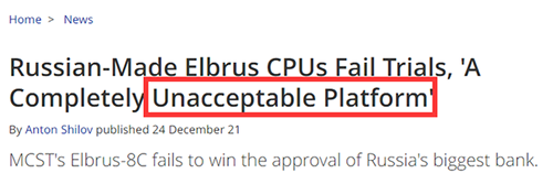tom'sHARDWARE :俄羅斯自研的Elbrus CPU測(cè)試失敗,“一個(gè)完全不可接受的平臺(tái)”