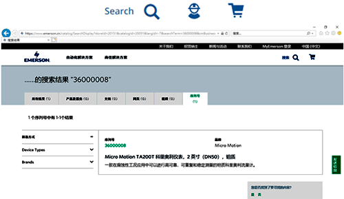 首先,可以在艾默生官網(wǎng)的搜索欄中,輸入產(chǎn)品銘牌上的序列號。在瀏覽器中就會清晰地展示此產(chǎn)品的型號,口徑,材質(zhì)和應(yīng)用場景。