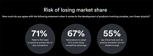 Ahlfeld博士補充說:"借助人工智能,工程領(lǐng)域的專家可以快速理解并即時預(yù)測復(fù)雜的物理學(xué),使他們能夠減少測試,了解更多,更快地進入市場。"通過這項調(diào)查發(fā)現(xiàn)的新見解,突顯了AI等先進技術(shù)的廣泛實施正變得多么重要。該行業(yè)現(xiàn)在需要采取必要措施,為數(shù)據(jù)驅(qū)動的未來做好準(zhǔn)備。