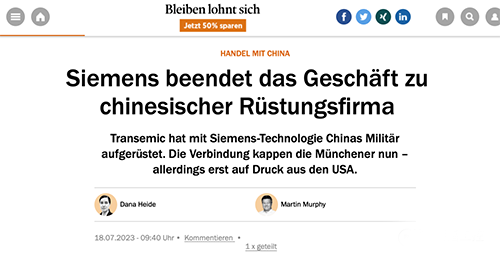 據(jù)報(bào)道稱,Transemic和西門子在中國(guó)的其他合作伙伴向與中國(guó)軍方有聯(lián)系的研究機(jī)構(gòu)出售了德國(guó)公司的建模軟件。據(jù)德國(guó)《商報(bào)》稱,該軟件可用于“優(yōu)化”軍用裝備和飛機(jī)。