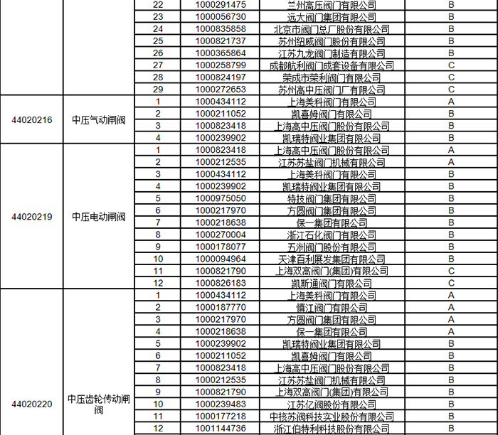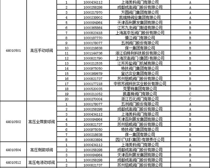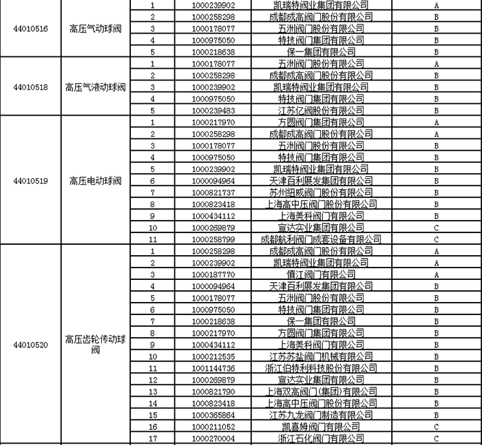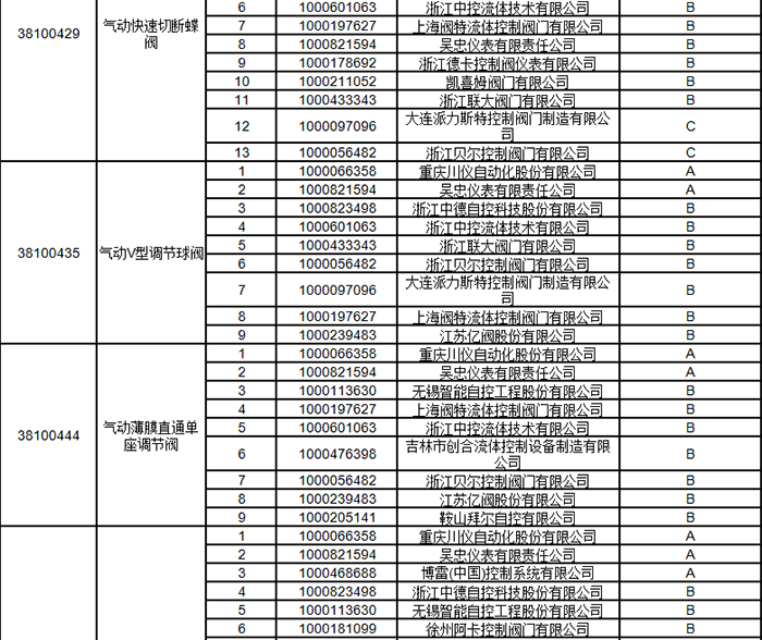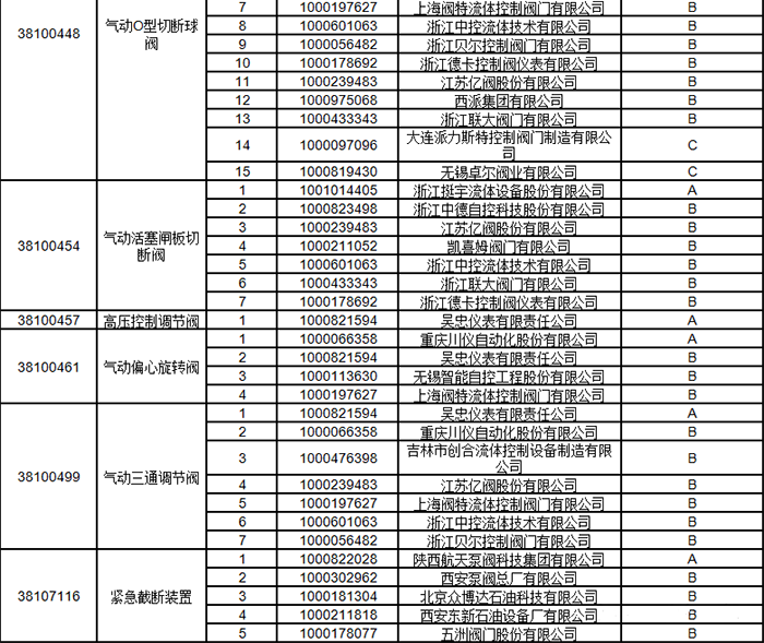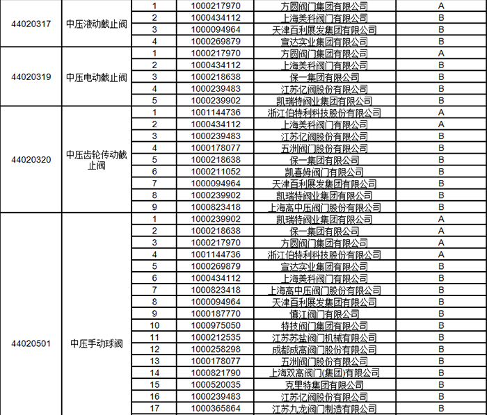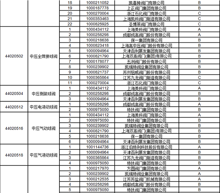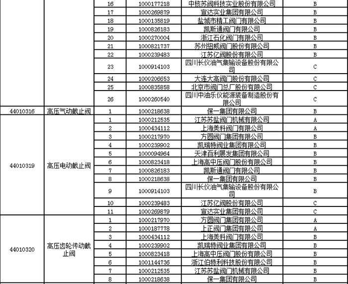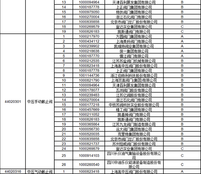 中石油2024年中壓閥門類一級(jí)物資供應(yīng)商考核評(píng)價(jià)結(jié)果