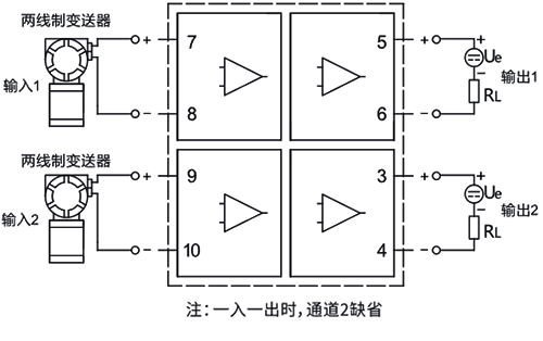 6、輸入側(cè)接兩線制4-20mA變送器,輸出側(cè)輸出兩線制4-20mA信號