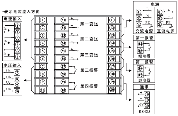 ◆電流輸入通道和電壓輸入通道都使用了互感器,將儀表與電網(wǎng)進(jìn)行了隔離,從而獲得良好的抗干擾性能