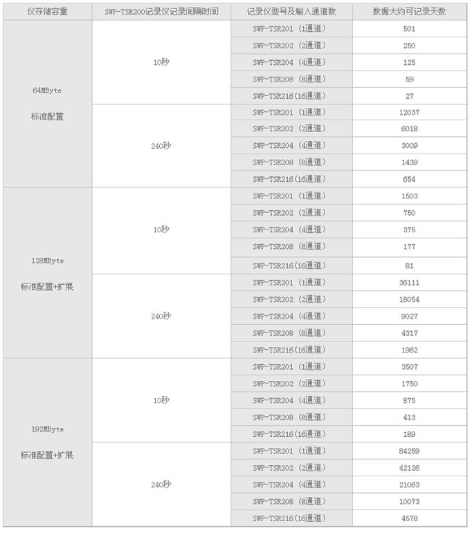 SWP-TSR100彩色無紙記錄儀數(shù)據(jù)記錄時間與儀表通道數(shù)量、無紙記錄儀記錄間隔時間和存儲空間有關系??蓞⒖聪卤恚?/span>