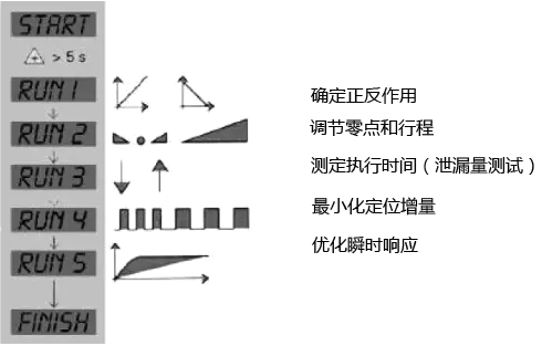SIPART PS2閥門(mén)定位器初始化過(guò)程中的五步具體含義,見(jiàn)以上示例。在此期間無(wú)須任何操作。如果在某一步出現(xiàn)故障,則按照第三部分中的方案進(jìn)行處理。