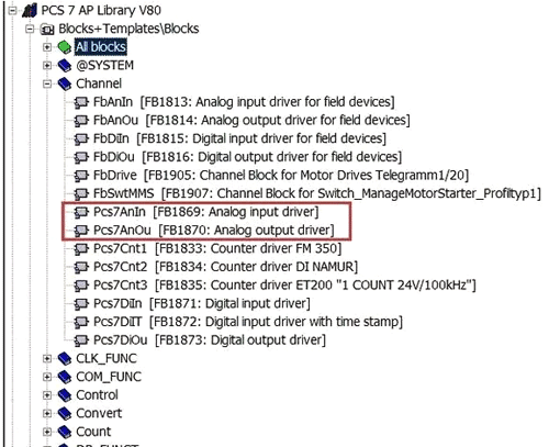 這篇文章主要介紹APL庫中的模擬量驅(qū)動塊。模擬量輸入點(diǎn)的通道驅(qū)動為Pcs7AnIn(FB1869),模擬量輸出點(diǎn)的通道驅(qū)動為Pcs7AnOu(FB1870)。