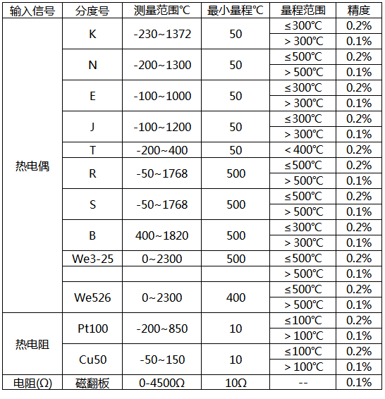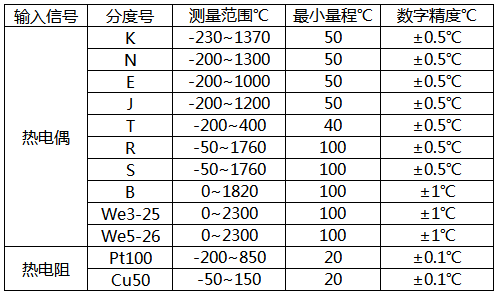 ◆智能非隔離型溫度變送器YR-ER213輸入類型及精度