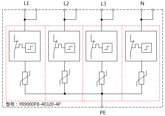 ◆YR9000PB-40/320-4P三相交流電源電涌保護(hù)器接線