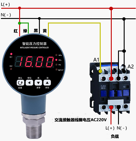 1、AC220V供電,負(fù)載高于700W時(shí)智能壓力控制器的接線