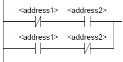 對(duì)于XOR函數(shù),必須按以下所示創(chuàng)建由常開(kāi)觸點(diǎn)和常閉觸點(diǎn)組成的程序段。