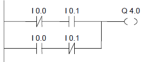 如果(I0.0=“0”且I0.1=“1”)或者(I0.0=“1”且I0.1=“0”),輸出Q4.0將是“1”。