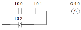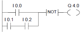 滿足下列條件之一時(shí),輸出端Q4.0的信號(hào)狀態(tài)將是“0”:①輸入端I0.0的信號(hào)狀態(tài)為“1”時(shí);②或當(dāng)輸入端I0.1和I0.2的信號(hào)狀態(tài)為“1”時(shí)。