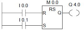 如果輸入端I0.0的信號(hào)狀態(tài)為“1”,I0.1的信號(hào)狀態(tài)為“0”,則置位存儲(chǔ)器位M0.0,輸出Q4.0將是“1”。否則,如果輸入端I0.0的信號(hào)狀態(tài)為“0”,I0.1的信號(hào)狀態(tài)為“1”,則復(fù)位存儲(chǔ)器位M0.0,輸出Q4.0將是“0”。如果兩個(gè)信號(hào)狀態(tài)均為“0”,則不會(huì)發(fā)生任何變化。如果兩個(gè)信號(hào)狀態(tài)均為“1”,將因順序關(guān)系執(zhí)行復(fù)位指令;復(fù)位M0.0,Q4.0將是“0”。