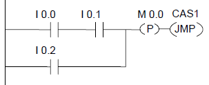 邊沿存儲(chǔ)位M0.0保存RLO的先前狀態(tài)。RLO的信號(hào)狀態(tài)從“0”變?yōu)椤?”時(shí),程序?qū)⑻D(zhuǎn)到標(biāo)號(hào)CAS1。