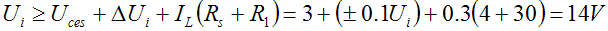 當(dāng)輸入電壓最低,而輸出電壓最高時(shí),調(diào)整管兩端電壓Uce最低,如用晶體管作放大器,則工作電壓Uce必須高于該管的飽和電壓Uces。,放大器才能正常工作。從手冊知晶體管的Uces值均小于3V。這時(shí)可用下式來計(jì)算: