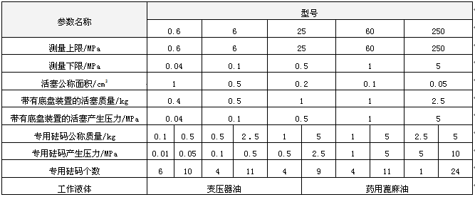 活塞壓力計(jì)的測(cè)量范圍上限可在0.6MPa、6MPa、25MPa、60MPa、100MPa、160MPa、250MPa、500MPa中選取。若與上述量程不一致,可按最近以上量程的數(shù)值選取。
