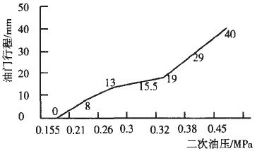 圖2 二次油壓與PEAK150輸出電流的線性關(guān)系 圖3 二次油壓與油門(mén)行程的線性關(guān)系