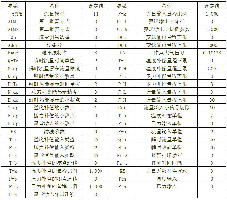 儀表與流量輸入相關(guān)的二級參數(shù)如下: