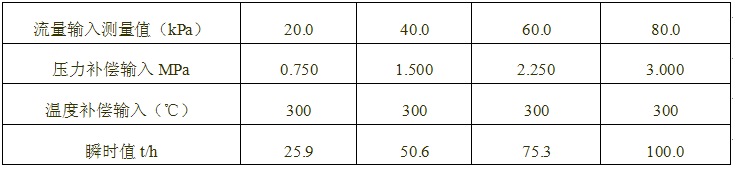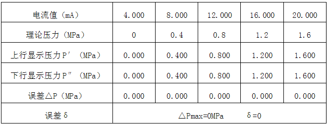 壓力補償輸入為4-20mA (測量范圍0-1.6MPa)的校準數(shù)據(jù)