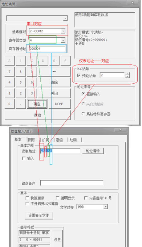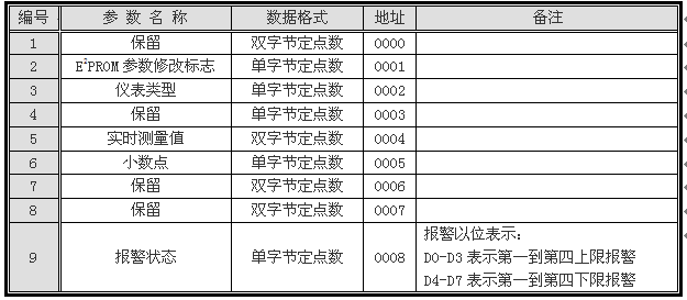 根據(jù)上面設置的串口,選擇COM2,寄存器類型選擇4,使用的是MODBUS中的03讀取指令。寄存器地址選擇4(000004是顯示格式,值就是4),和下表的儀表讀取一致。
