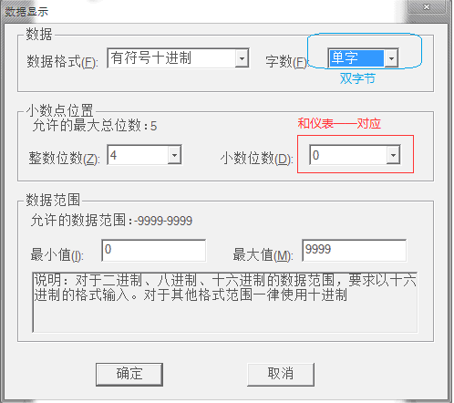 根據(jù)儀表地址及數(shù)據(jù)格式,顯示格式使用有符號十進制,如圖: