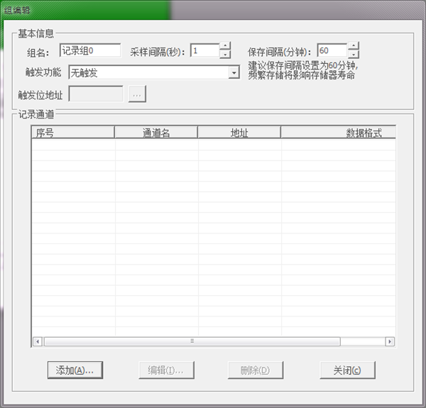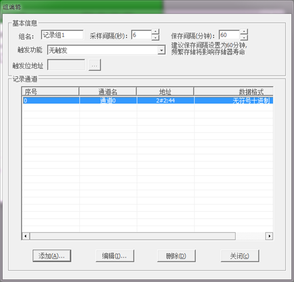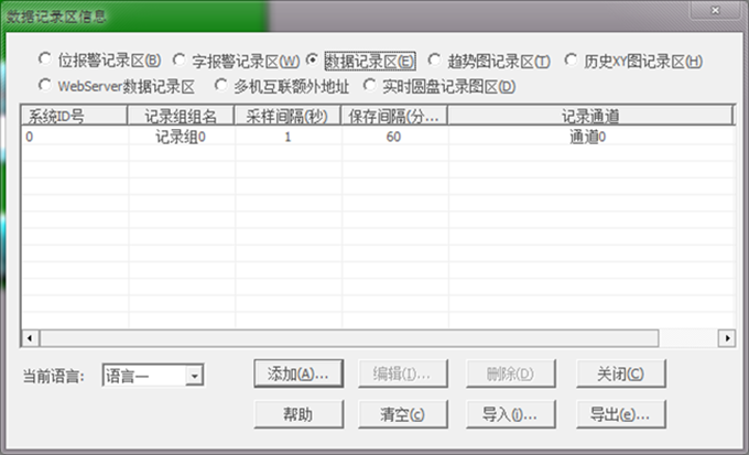 選擇SWP-HMI人機界面菜單上的“設置”----“數(shù)據(jù)記錄區(qū)”,打開如圖: