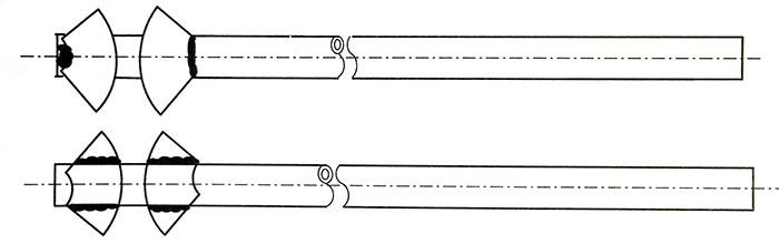 在儀表維修中,會涉及到儀表導壓管及電氣保護管的敷設工作,盡管工作量不會太多,仍會遇到鋼管的冷彎加工,鋼管的冷彎制就需要彎管器。對于工作量不大或一些小型企業(yè),專門購置電動、機械的彎管器并不劃算,如果能自己動手制作一副彎管器是很方便且實用的。現(xiàn)介紹一種手工彎管器的制作方法,先按圖1加工好滑輪,然后按圖中的垂直線將滑輪鋸割為四塊,把鋸下的四塊鐵分別焊接在兩根鋼管上,如圖2所示,一個滑輪可以制作一副彎管器。焊接時拿一截對應直徑的鋼管比著焊兩鐵塊的間距,這樣焊好后空隙比較合適,如果空隙小了,無法從側面放到要彎制的管子上,操作起來不方便。圖中加工序號1制作的彎管器可用來彎1/2in的水煤氣管,鋸割的鐵塊焊接在1in的鋼管上,鋼管長度為1.2m左右。用加工序號2制作的彎管器可用來彎Ф14的導壓管,鋸割的鐵塊焊接在1/2in的鋼管上,鋼管長度為lm左右。
