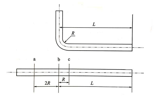 用手工彎管器彎鋼管時,先在鋼管需要彎曲處劃上記號,然后把彎管器套在被彎制的鋼管上,彎管器要分別放在被彎制鋼管的兩側,如圖3所示。彎管時需要兩個人共同操作,其中一個人使用2號彎管器,作用是固定被彎管,另一個人使用1號彎管器,由其來進行彎管,兩人的用力方向正好相反,如圖3中的箭頭所示。彎制質量取決于操作1號彎管器的人,如要彎制圖3所示的直角彎時,2號彎管器固定在c處不動,1號彎管器從a處用力向箭頭方向彎動,并逐漸向b端移動,直至彎成直角彎,這樣還可保證L的尺寸。鋼管彎制時要一次彎成,管子彎曲后,應檢查有無裂紋和凹陷處。儀表管的彎曲半徑在《GB 50093-2013 自動化儀表工程施工及驗收規(guī)范》有規(guī)定,即“高壓鋼管的彎曲半徑宜大于管子外徑的5倍,其他金屬管的彎曲半徑宜大于管子外徑的3.5倍,塑料管的彎曲半徑宜大于管子外徑的4.5倍”。