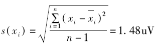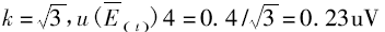 由掃描開關說明書中技術指標可知轉換開關的寄生熱電勢不超過±0.4uV,區(qū)間半寬度a=0.4uV在區(qū)間內可服從均勻分布k=根號3,
