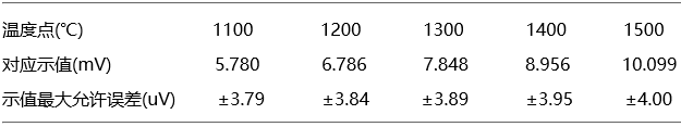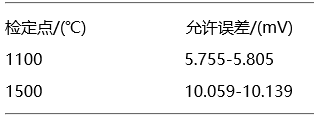1、測量對象被檢偶為二等標準鉑銠30-鉑銠6熱電偶,其檢定點及熱電動勢值的最大允許誤差如表1所示: