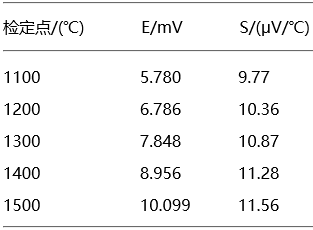 式中:E標證(t)為一等標準鉑銠30-鉑銠6熱電偶證書中分度點上的熱電動勢值;Δ(et)為檢定時測得被檢鉑銠30-鉑銠6熱電偶和標準鉑銠30-鉑銠6熱電偶熱電動勢的平均值的差值。