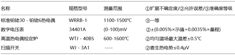 2、標準器和配套設備鉑銠30-鉑銠6熱電偶檢定所需的標準器和配套設備相關信息如下表3所示: