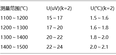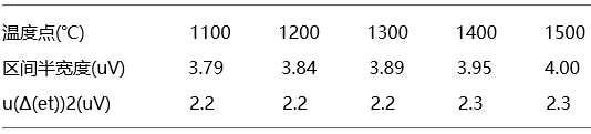 表4 一等標準鉑銠30-鉑銠6熱電偶引入的不確定度