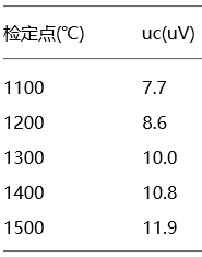 根據數字電壓表34401A的說明書中的技術指標可知,校準后1年內其示值最大允許誤差為±(0.005%×示值+0.0035%×量程),量程選擇為(0-100)mV,示值的選擇根據不同的溫度點。由ITS-90溫標B型熱電偶分度表可知,然后就可以算出各檢定點對應的數字電壓表的示值誤差,見表6: