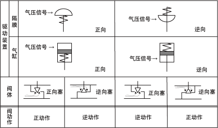 根據(jù)操作信號(hào)以及驅(qū)動(dòng)源消失時(shí)的動(dòng)作方向和流量特性,執(zhí)行機(jī)構(gòu)和閥體可以有多種不同的結(jié)構(gòu),此處僅對(duì)其中具有代表性的結(jié)構(gòu)進(jìn)行說(shuō)明。