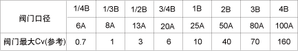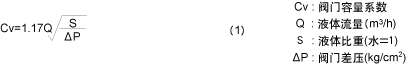 閥門差壓為1psi(0.07kg/cm2=7kPa),常溫水以每分鐘1加侖(3.785升)的速度流動(dòng)時(shí),將流量容量系數(shù)Cv的值定義為1。