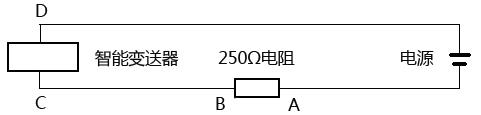 手持通訊器和智能變送器相連接時(shí),可以連在任何位置(如圖所示),可以連在負(fù)載電阻R兩端,即AB點(diǎn);也可以連在CD兩點(diǎn);但不能連在AD兩點(diǎn)。因?yàn)殡娫词堑妥杩沟?,?nèi)阻很小,可以看做是短路,如果連在AD兩點(diǎn),也即成了電源兩端,由于這兩端的電阻極小,實(shí)際上相當(dāng)于一點(diǎn),這樣手持通訊器和變送器的HART協(xié)議通訊不上就很自然。讀取或設(shè)定信息,所以要將連線的連接位置改過來。