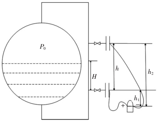 在高加內水的高度為H時,雙法蘭差壓變送器正壓測所受的壓力為:P+=P0+ρ水×gH-ρ介×g×h2;雙法蘭差壓變送器負壓側所受的壓力為:P-=P0+ρ介×g×h2;所以,變送器正負壓側的差壓:P=P+-P-=ρ水×g×H-ρ介×g×h2-ρ介×g×h2=ρ水×g×H-ρ水×g×h;當液面最低H=0時, P1=-ρ介×g×h;當液面最高H=h時,P2=-ρ水×g×h-ρ介×g×h。