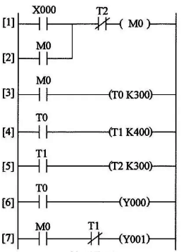 一種典型的多定時(shí)器組合控制的PLC線路與梯形圖