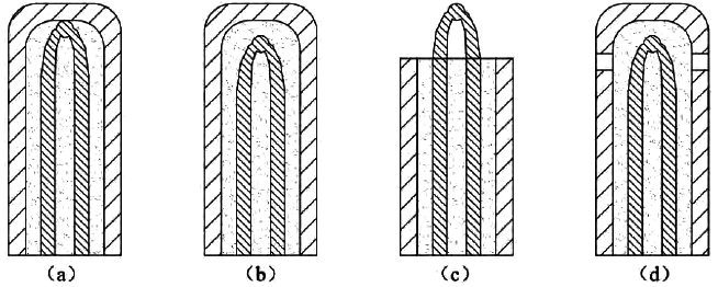 (a)接殼式;(b)絕緣式;(c)露端式;(d)帶阻滯室式