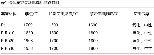 貴金屬鎧裝熱電偶的套管材料通常采用鉑及鉑合金或銥及銥銠合金構(gòu)成。鉑及鉑合金具有如下特性: