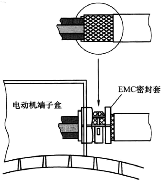 圖4 通過EMC屏蔽實(shí)現(xiàn)與電動(dòng)機(jī)端子盒的屏蔽連接