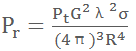 .............................公式②說明:公式中Pr為雷達接收到的目標(biāo)反射功率,dBm;Pt為雷達發(fā)射功率,dBm;G為天線增益,dB;λ為雷達波長,m;σ為目標(biāo)的散射截面積,m2